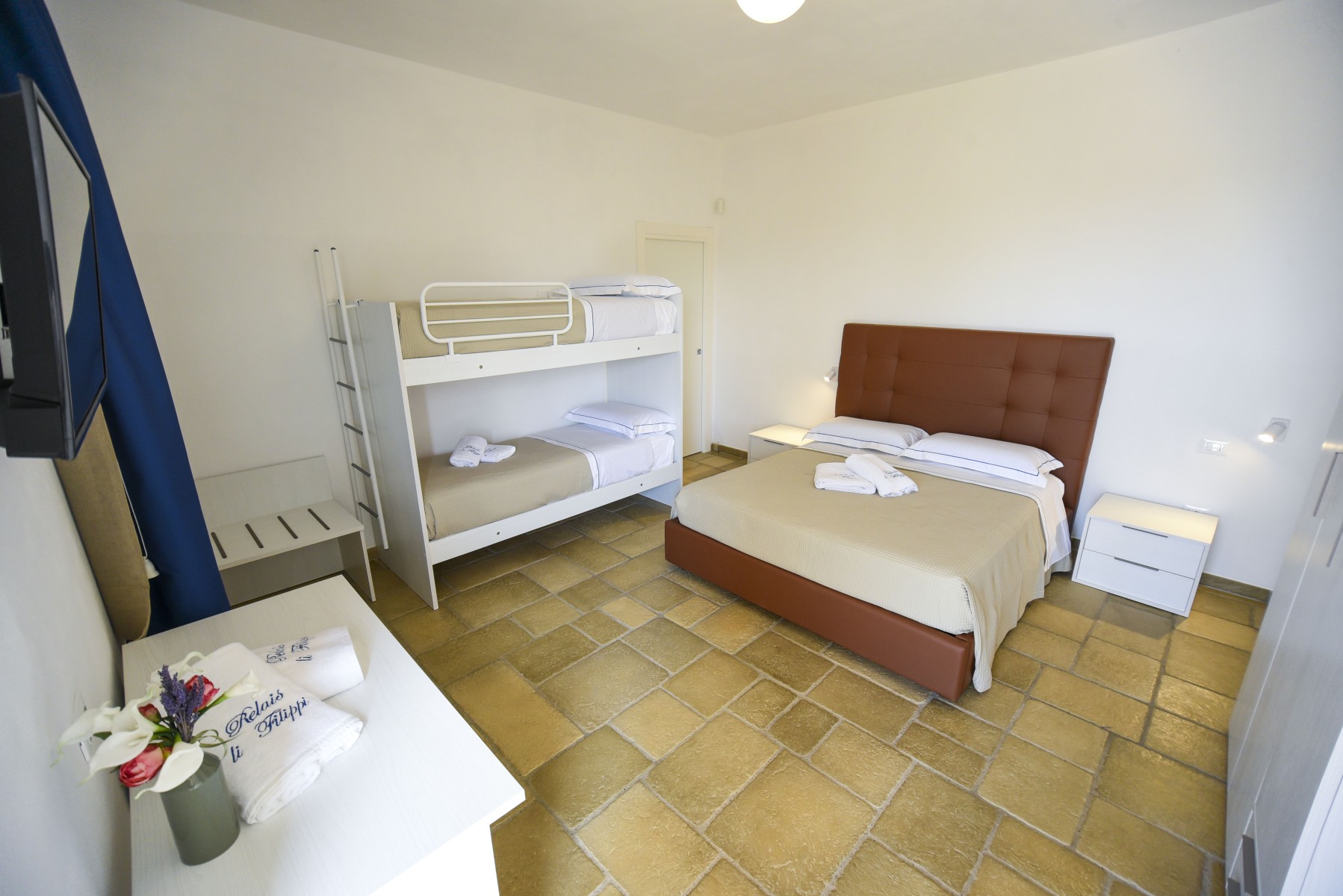 Gli ospiti saranno accolti in un ambiente caldo e ricco di un antico fascino. L’alloggio è un monolocale composto da ingresso dotato letto matrimoniale, letto a castello, spazio per una culla e bagno con doccia. La camera dispone inoltre di una veranda privata antistante l’ingresso ideale per pranzare e cenare all’aria aperta.